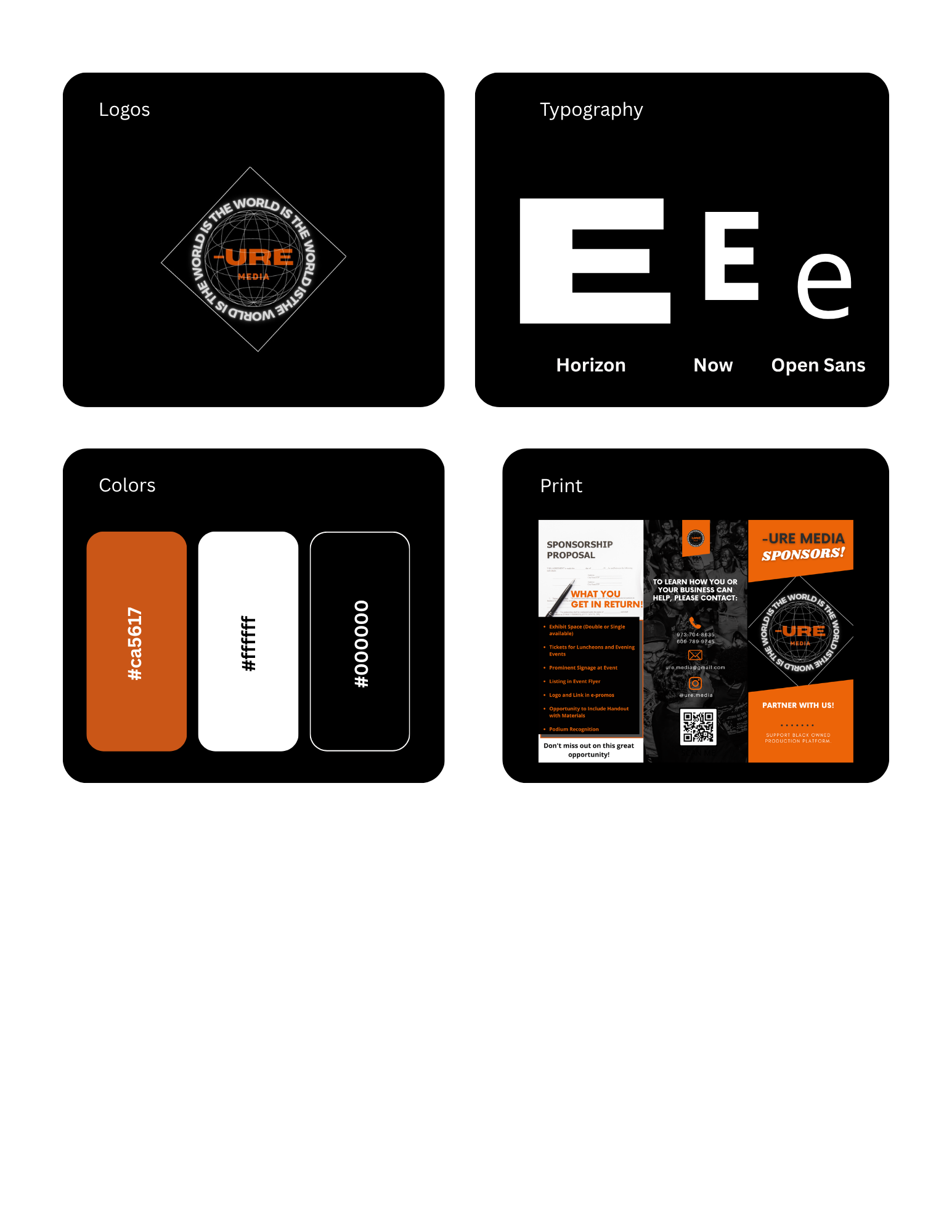 Includes: Banners · Posters · Flyers · Merchandise · Business Cards · Brochures